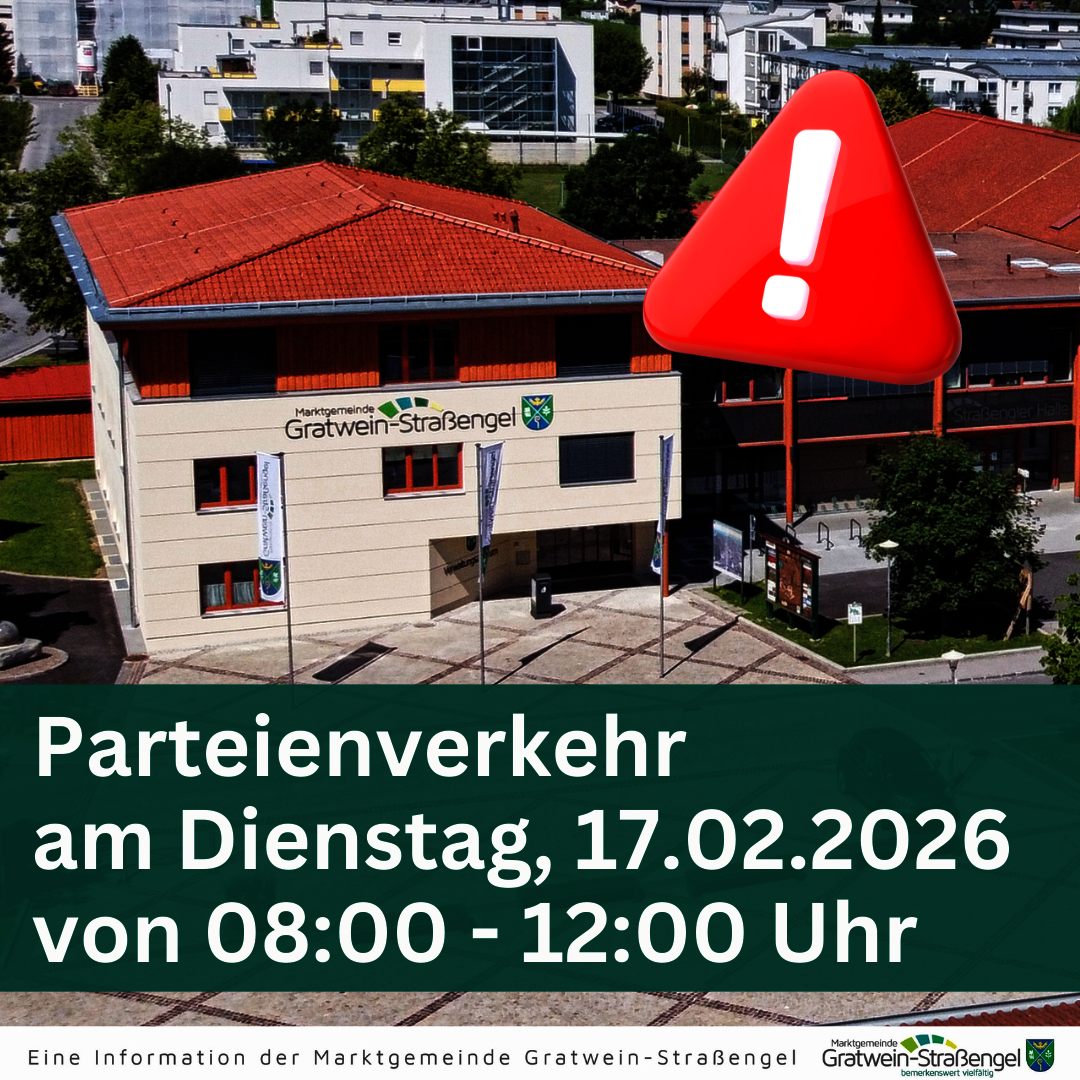 Liebe Bürger*innen, am Faschingsdienstag, 17.02.2026 steht Ihnen der Parteienverkehr vormittags von 8-12 Uhr zur Verfügung. Nachmittags bleibt das Gemeindeamt für den Parteienverkehr geschlossen!