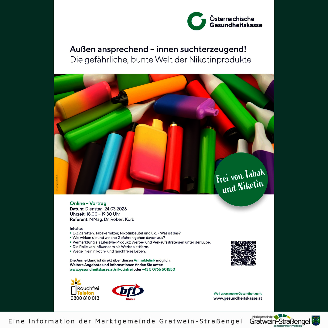 Online-Vortrag der ÖGK: Außen ansprechend – innen suchterzeugend! Die gefährliche, bunte Welt der Nikotinprodukte