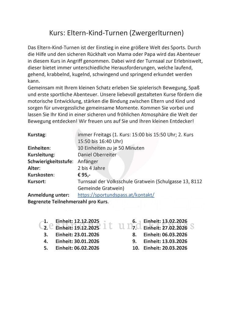 Kurs: Eltern-Kind-Turnen (Zwergerlturnen) - Sport & Spass