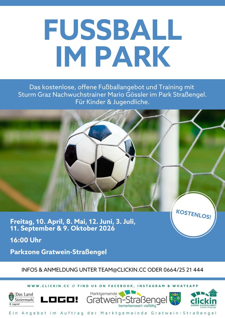 Das kostenlose, offene Fußballangebot und Training mit Sturm Graz Nachwuchstrainer Mario Gößler im Park Straßengel. Für Kinder & Jugendliche.