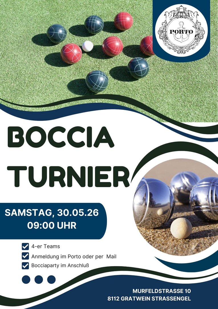 4-er Teams, Anmeldung im Porto oder per Mail, Bocciaparty im Anschluß